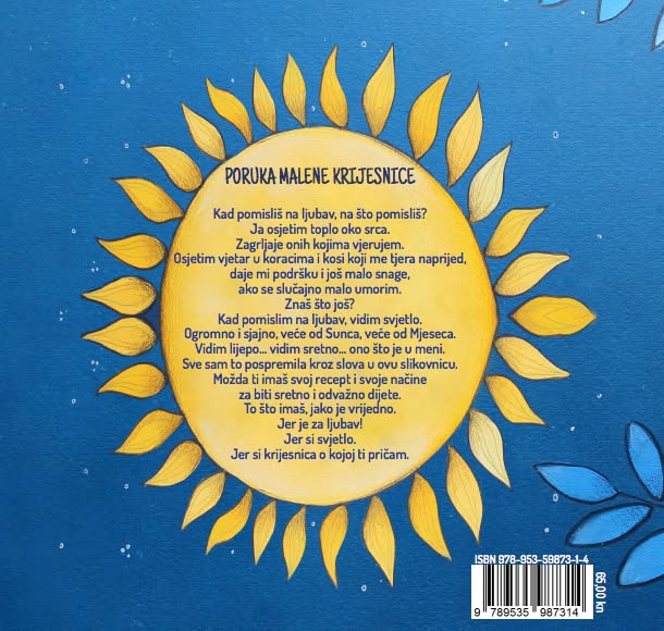 Krijesnica koja se zove baš kao ti priča je za sve naraštaje. Svatko će, bez obzira na uzrast, razumjeti zašto je priča o ovoj posebnoj Krijesnici jako važna. Jer Krijesnica te svojom iskričavošću, domišljatošću i mudrošću privuče k sebi i ti zajedno s njom osjećaš nepravdu svijeta, bol Mudroga Stabla, nemoć Mjeseca i snagu Vjetra i, baš zato, zajedno s njom odlučuješ naučiti popraviti svijet. Može li se svijet popraviti? Može. Uz pomoć prijateljstva, s ljubavlju, razgovorom i maštom. Svaki se otkrhnuti svijet može popraviti, barem malo, a Krijesnica koja se zove baš kao ti poučit će malene slušače i čitače kako se to radi.